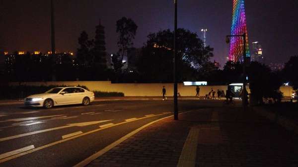 夜间拍摄广州塔的表现,口袋灵眸明显反超了 iPhone 8 Plus,两组样张的色彩调校比都是口袋灵眸的更吸引眼球,噪点和高光的抑制也明显是口袋灵眸更加优秀。