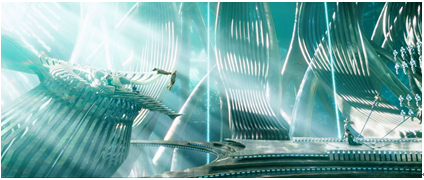 第一个问题就是光线。设计团队从海洋、海洋生物中得到源源不断的启发,让海底的照明有了落地的根源—— 深海的自发光动物。 所以当亚瑟来到亚特兰蒂斯后,发现整个城市都在自己发光。