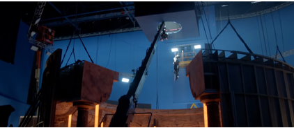 经过操纵人员和特技演员几个月时间的大量研究和开发,一种叫做"the tuning fork"的类机械支撑臂的东西被创造了出来。它是一根非常长的杆,在末端有一个叉子,可以拾取演员的臀部,同时保持演员身体平衡。它还允许演员做一些轻柔的浮动动作。