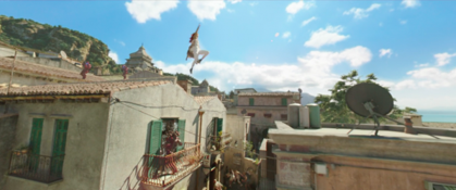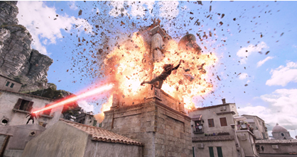 影片中令人印象深刻的,也是阿汤哥、马克呆萌在间谍电影中最爱的运动——跑酷发生在西西里岛依山而建的错落民居屋顶之上,亚瑟和媚拉被各自的敌人追逐从而与建筑空间产生互动。本人认为最牛的部分是温子仁导演对双线动作的剪辑与时间线把控。