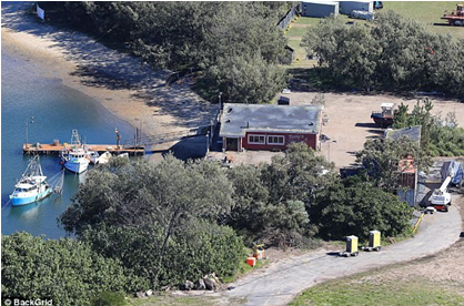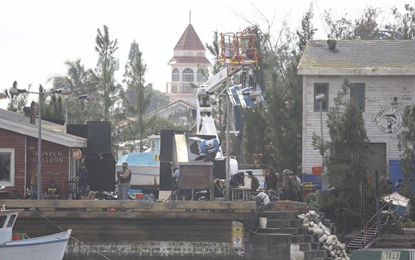 渔村场景包括了大赦湾 Fish Co-Op 的两层集装箱和一家叫做 Sunken Galleon 的商店。电影中海王和父亲在此见面并在酒吧里和粉丝们痛饮了一夜。但村子外围的景色是 CG 特效制作的,所以部分镜头需要遮挡上蓝幕。