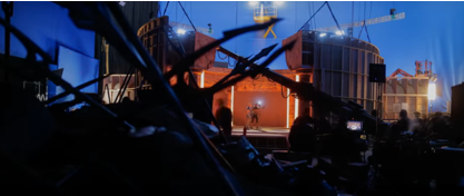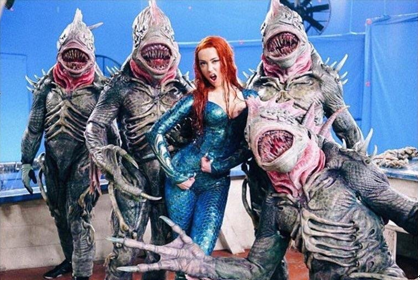另一边,海王与黑蝠鲼的激战正酣,但他们所在的布景是另外搭建的,就建在几十米远的地方。