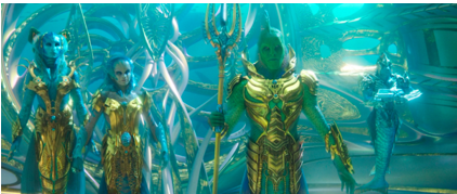 世界观的定位和导演或制片人密切相关。温子仁认为亚特兰蒂斯不应该是沉闷或悲惨的(打脸 DC 黑暗风格)。他想把亚特兰蒂斯想象成一个神奇的地方,它应该偏离主流的设计,去创造一些前所未有的有趣的视觉画面。