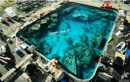 在外景搭建水池或水箱的制作方式,虽然并不能达到摄影棚的灯光控制条件,但四周留出的蓝幕搭建空间、设备移动空间、镜头调度空间可以省下不少的预算。所以,你在电影中看到的海面美景,演员只能在小泳池里靠意念欣赏了...