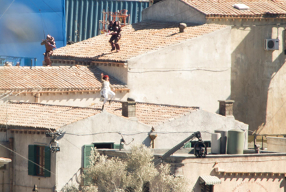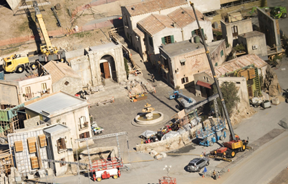 制片厂中常常留有一些外景搭建地,英文名为 Backlot,如果空间不够,停车场也能成为临时搭建区域。片中最重要的陆上场景便是西西里岛的喷泉广场和用来跑酷的屋顶民居。