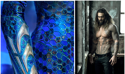 海王身上刺青的设计其实是扮演海王的演员杰森·莫玛的主意。而纹身几乎算是他全片中最重要的戏服,拍摄期间化妆师需要每次花费大量的时间绘制莫玛身上的纹身。而其他亚特兰蒂斯人的服装参考了更具有生物感的蜂窝状纹理,而不是简单的金属或丝绸外衣。
