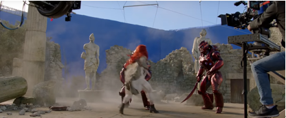 在主演拍摄前,武替(动作替身演员)会根据导演和剧本要求在现场进行动作预演,导演找到满意的拍摄调度方式后,才会让士兵穿上盔甲与媚拉进行正式拍摄。