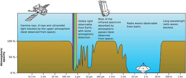 这个图大家应该见了很多次了,地球大气的电磁波窗口:
