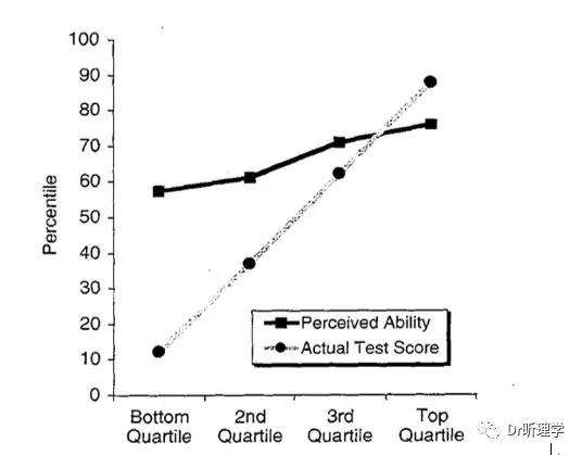 研究者让被试完成一系列任务,来衡量他们的实际能力,和他们自我评估的能力之间的差距。结果发现,越是能力差的人,越是容易高估自己的能力。