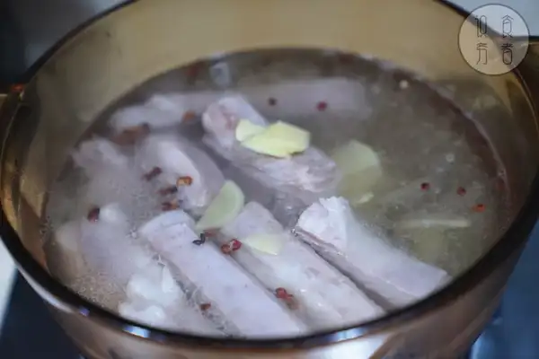 另外,要准备一锅水,再准备几片姜片,以及花椒粒十几颗。