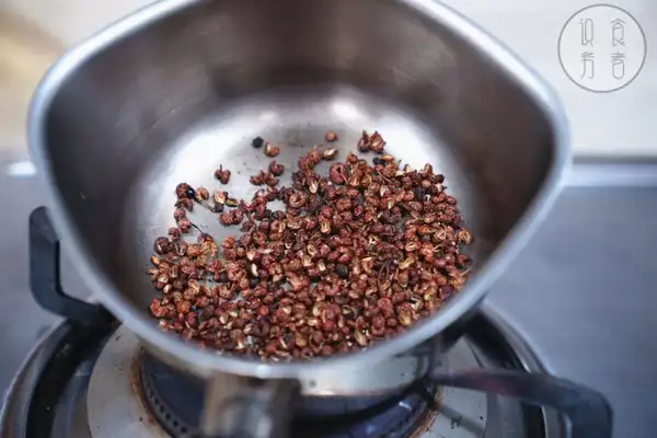 炖煮的时候,我们可以顺便准备下蘸料和配菜。蘸料我个人偏爱用花椒盐,做法也很简单,花椒简单洗洗,然后煸干。