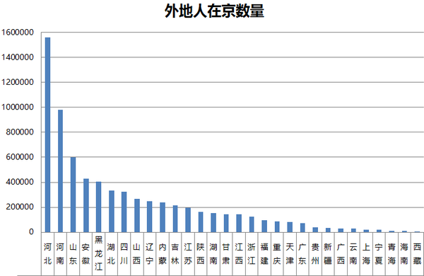 这样一来,形势基本就非常明朗了。以宁夏为界,左边基本都是长江以北的省份,右边基本都是长江以南的省份。可以说,在来北京的人外地人中,北中国构成了绝对主力,而河北河南更是主力中的主力。