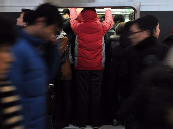 上图为北京地铁东直门站早高峰人潮,图片来自视觉中国,未经授权请勿使用。
