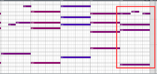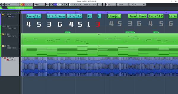 ↑第一小节最土,旋律走的全部是根音五音,到第二三小节,陆续出现了七音三音,这种土的感觉就有好转,这是这首歌刚刚进唱的部分,大家可以感受下是不是这种感觉。后面也大量出现这种情况,大家可以听听看。