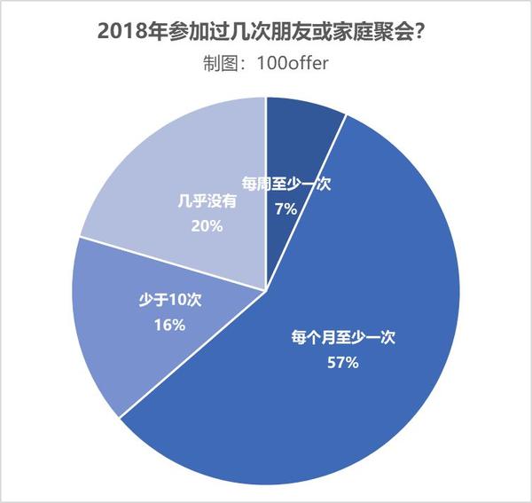 同样单身的小佳和张乔都表示,2018 年他们参加朋友或家庭聚会的次数不超过 5 次。