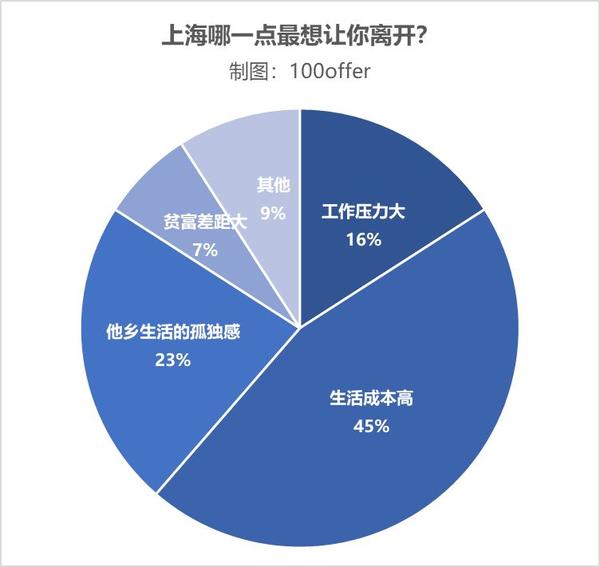 在 100offer 的调查数据中,生活成本高、他乡生活的孤独感和工作压力大,成为魔都互联网人最想离开上海的「三大理由」。