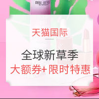 天猫国际目前有"全球新草季"活动,活动期间,主会场可领取满299-30、699-80、1199-150、1699-200元优惠券;1元抢100元无门槛、满299-100元等大额品牌券;国际直营会场可领取满399-40、699-80、1199-150、1899-260元等多档品类券。